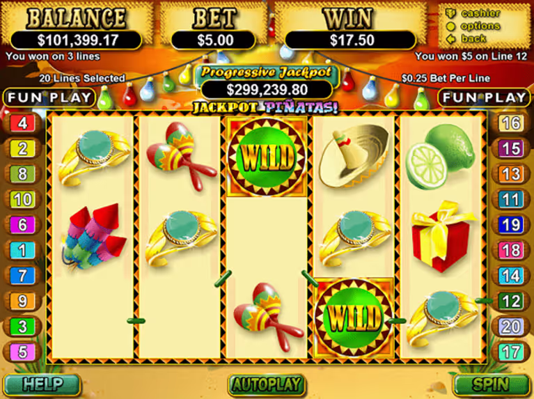 Experience the vibrant world of Jackpot Pinatas Slots, a game that bursts with festive energy and the promise of rewarding spins. This 5-reel, 20-payline video slot by Real Time Gaming invites players into a lively celebration filled with colorful pinatas and cheerful music, offering an exciting blend of entertainment and potential for big wins.